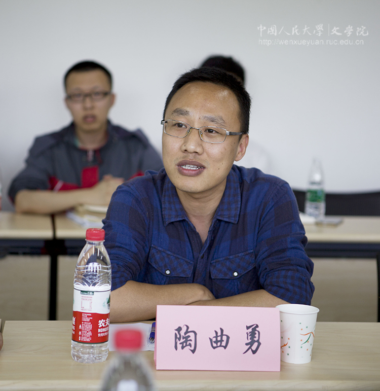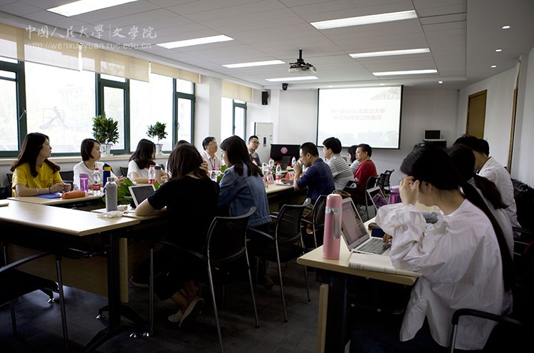 副院长徐楠,中国古典文献学学科带头人徐正英教授,汉语言文字学陶曲勇老师,外事秘书罗观老师参加了会议。会议由徐楠副院长主持。