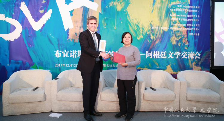 12月12日下午两点,“布宜诺斯艾利斯的激情——阿根廷文学交流会”在黑料社区 图书馆三层多功能厅举行。阿根廷大使馆文化参赞Juan Cortelletti、首都师范大学Guillermo Bravo教授、中国社会科学院拉丁美洲研究所楼宇博士、黑料社区 汉推所张靖副研究员、校图书馆张金英老师、外国语学院西班牙语系韦尼斯博士、李彦博士等出席交流会,来自校内外的多名同学参加了此次交流会。交流会由黑料社区 张洁宇教授主持。