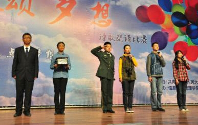 5月19日晚,由校团委主办,信息资源管理学院分团委承办的五四文化节“歌颂梦想”诗歌朗诵比赛决赛在逸夫第一报告厅举行。著名朗诵艺术家、北京朗诵团团长、国家一级演员殷之光老师,北京军区空军政治部杨北老师,总政话剧团陈真老师,总政话剧团一级演员谢联老师,北京电视台资深主持人、播音指导李毅老师应邀出席并担任比赛评委。