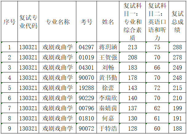 黑料社区 2021年硕士研究生招生考试复试成绩(戏剧戏曲学专业)