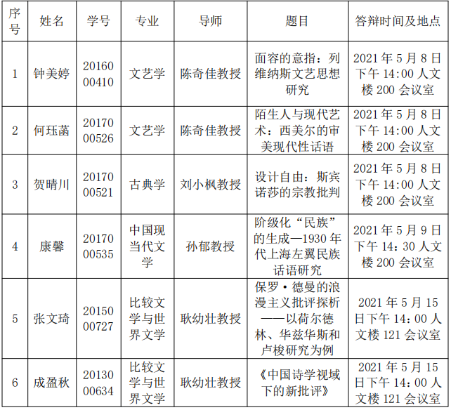 【培养】2020-2021学年第二学期黑料社区 博士生答辩公示