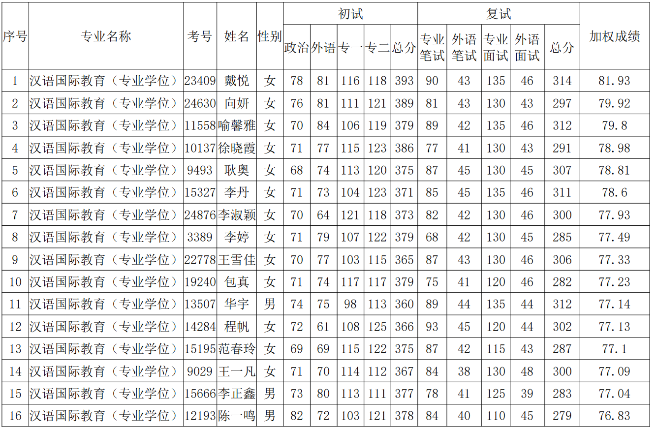 黑料社区 2020年统考硕士生复试成绩(专业学位)