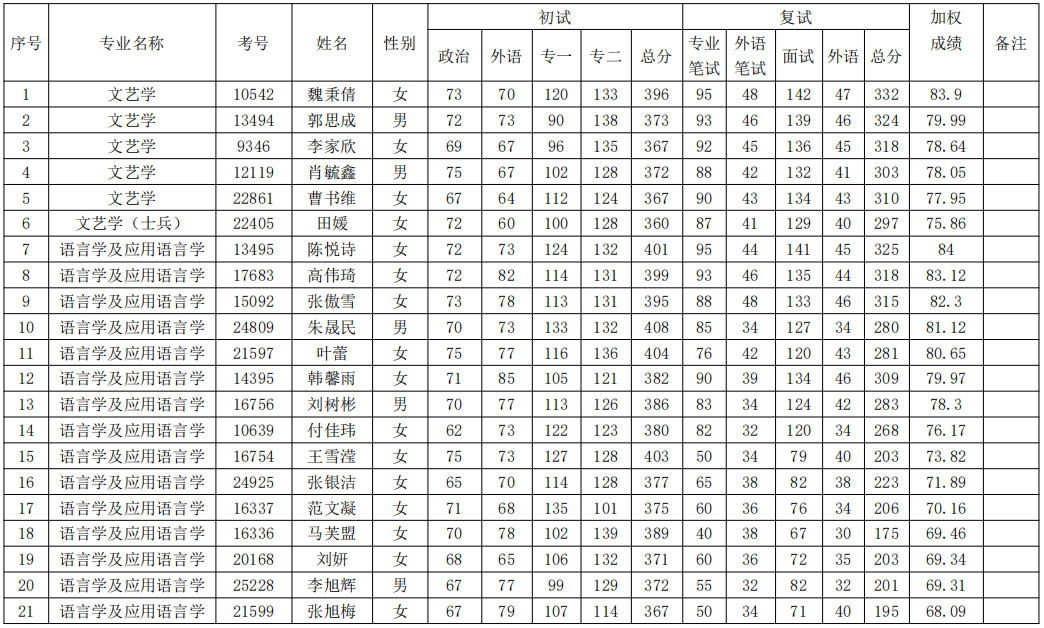黑料社区 2020年统考硕士生复试成绩(学术型)