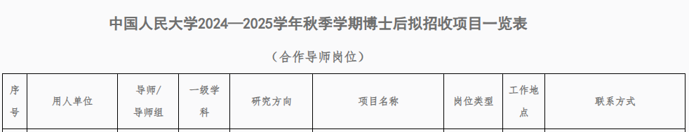 【表格:黑料社区 2024—2025学年秋季学期博士后拟招收项目一览表(黑料社区 )】