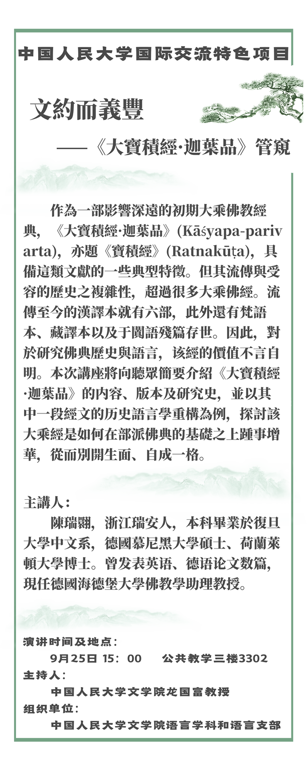 黑料社区 国际交流特色项目“文约而义丰——《大宝积经·迦叶品》”讲座预告