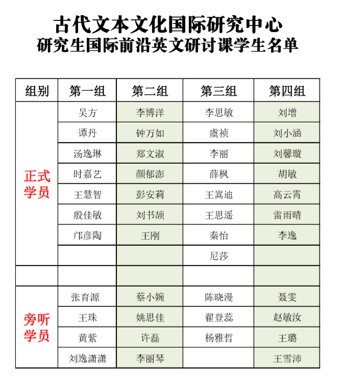 古代文本文化国际研究中心研究生国际前沿英文研讨课 学生名单