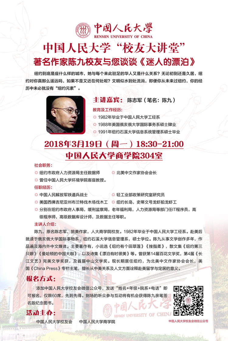 校友大讲堂——著名作家陈九校友与您谈谈《迷人的漂泊》