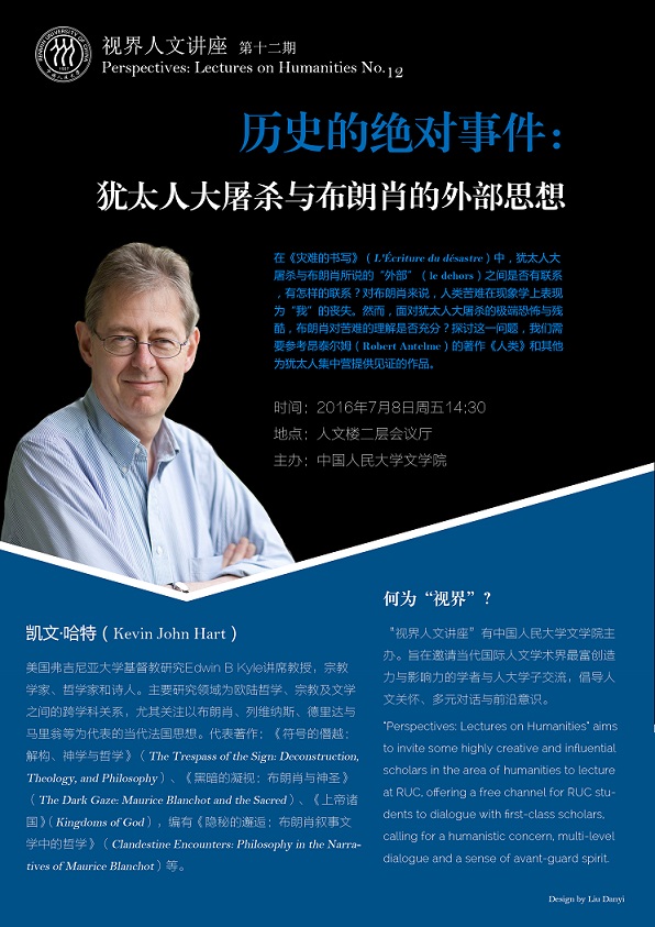 Hart),美国弗吉尼亚大学基督教研究 Edwin B Kyle讲席教授,神学家,哲学家和诗人。主要研究领域为欧陆哲学、宗教及文学之间的跨学科关系,尤其以布朗肖、列维纳斯、德里达与马里翁等为代表的“现象学的神学转向”。代表著作《符号的僭越:解构、神学与哲学》(The Trespass of the Sign: Deconstruction, Theology, and Philosophy)、《黑暗的凝视:布朗肖与神圣》(The Dark Gaze: Maurice Blanchot and the Sacred)、《上帝诸国》(Kingdoms of God),编有《隐秘的邂逅:布朗肖叙事文学中的哲学》(Clandestine
