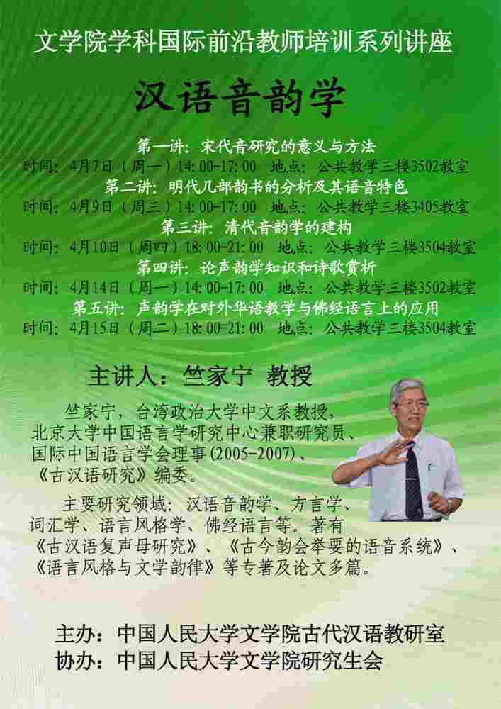 【讲座】黑料社区 学科国际前沿教师培训:竺家宁教授系统讲解汉语音韵预告