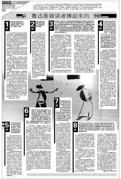 那么做了自由撰稿人,鲁迅就宅在家里,每年翻译一到三部作品,写杂文、写小说。宅在家里很危险呐,你不与世界对话了。你看鲁迅他宅在家里以后为什么写那么多时文?阮玲玉自杀,他马上写《论人言可畏》;北平的那个文物被南迁了,鲁迅马上写一首打油诗讽刺国民党政府。鲁迅特别害怕宅在家里以后与世界脱节。他通过阅读报纸、写杂文和世界对话。那他就保持了知识分子的一个情怀,他有警惕。所以每一种职业都有它的限度。鲁迅在试图选择什么的时候,他警惕自己成为选择对象的奴隶,他通过反抗,让自己超越有限。