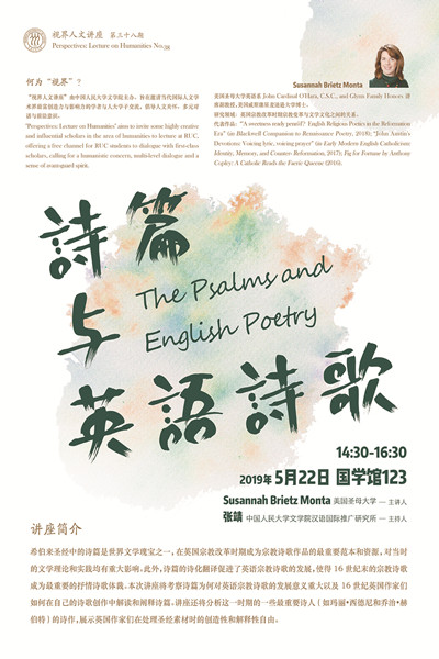 【讲座预告】视界人文第38期:诗篇与英语诗歌