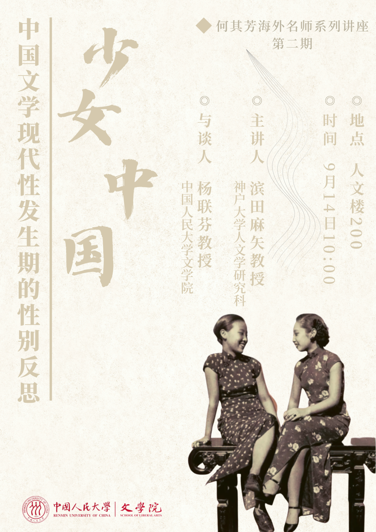 【讲座预告】何其芳海外名师系列讲座第二期——滨田麻矢教授:“少女中国”--中国文学现代性发生期的性别反思.docx
