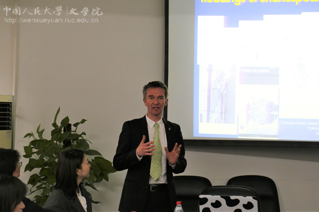 在提问环节,参加讲座的各位师生与Anselm教授就莎剧的改编与演出、莎剧在不同国家的实践、莎剧与欧洲“传统的发明”等问题进行了引人入胜的讨论,并分享了许多不同的观点与见解,引发了更多有趣的评论。
