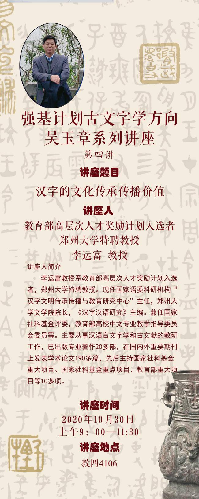 【讲座预告】强基计划古文字学方向 吴玉章系列讲座第四讲“汉字的文化传承传播价值”