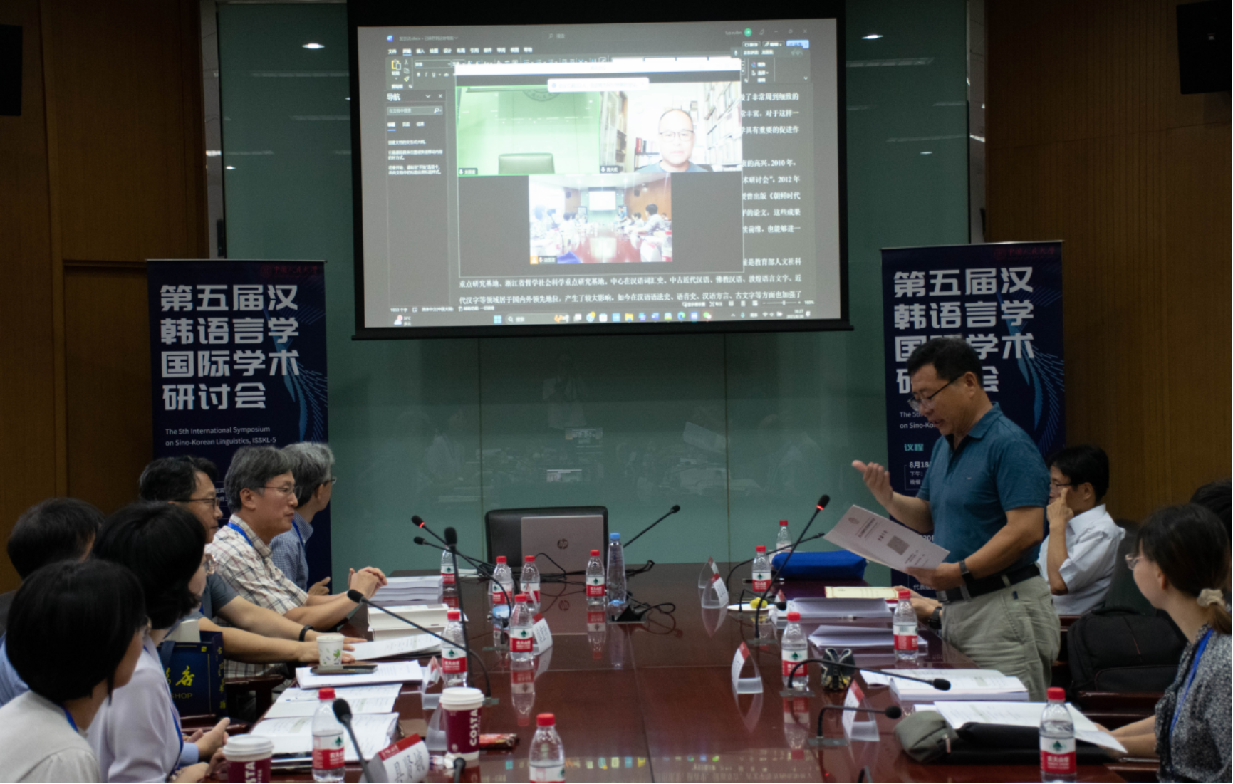 闭幕式最后,下届会议举办方浙江大学真大成教授线上遥祝研讨会顺利,并对浙江大学汉语史研究中心即将承办的第六届汉韩语言学国际学术研讨会作出展望,欢迎各位专家学者两年后相聚杭州。