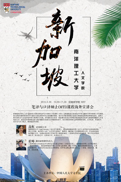 【讲座预告】新加坡南洋理工大学人黑料社区 笔译与口译硕士(MTI)课程海外宣讲会