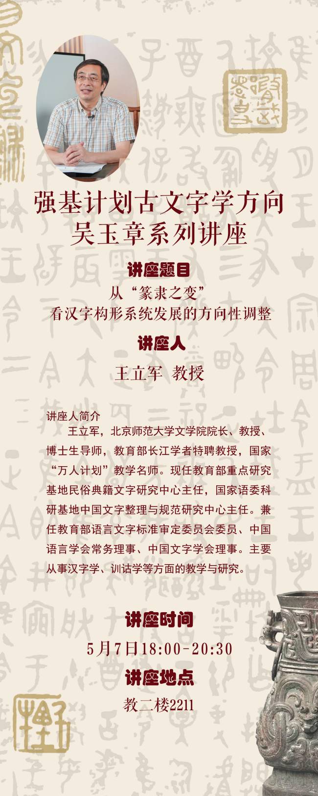 【讲座预告】强基计划古文字学方向吴玉章系列讲座第十三讲 从“篆隶之变”看汉字构形系统发展的方向性调整