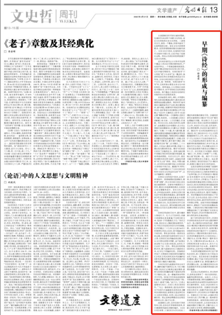 [光明日报] 徐建委:早期《诗经》的形成与编纂