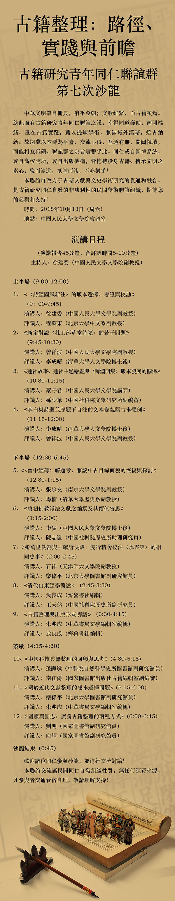 古籍整理:路徑、實踐與前瞻——古籍研究青年同仁聯誼群第7次沙龍 會議議程