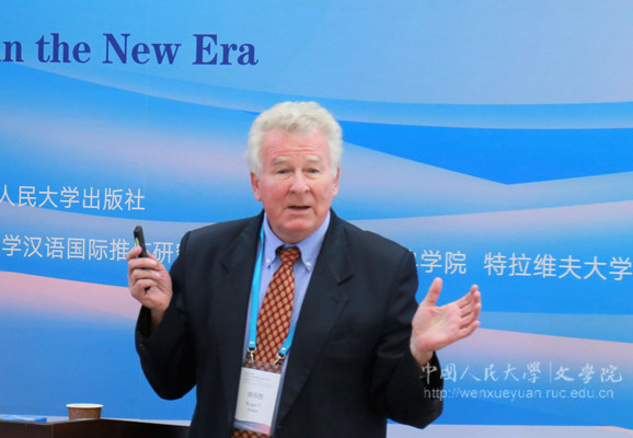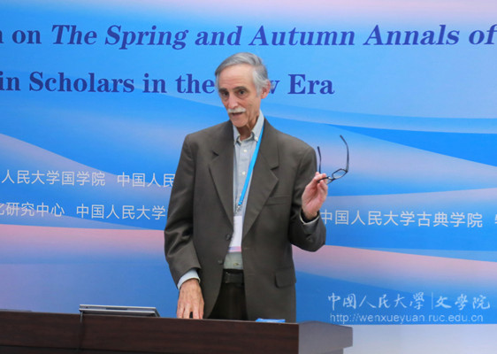 新书发布仪式后,“对话古代中国——《晏子春秋》及新时期先秦诸子研究”国际学术会议在国学馆109召开。欧永福(Yoav Ariel)、蒲安迪(Andrew Plaks)、安乐哲(Roger Ames)三位著名汉学家为主讲嘉宾,从自己的学术专长出发与“古代中国”对话。