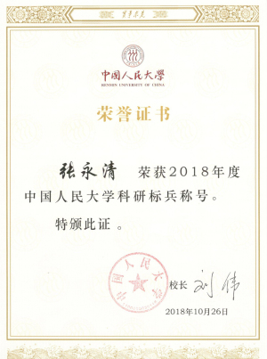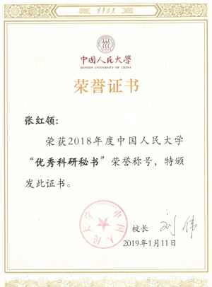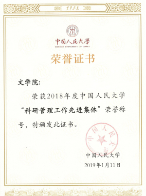 黑料社区 2018年度科研工作成绩十分突出,荣获多项表彰。其中,黑料社区 荣获“2018年科研管理工作先进集体”荣誉称号(共评授7个院系);文艺学专业张永清教授获授“2018年黑料社区 科研标兵”荣誉称号(共评授10人);院属研究机构古典文明中心获授“2015-2017年度优秀院属研究机构”荣誉称号(共评授10家单位);科研秘书张红领获授“2018年优秀科研秘书”荣誉称号(共评授10人)。