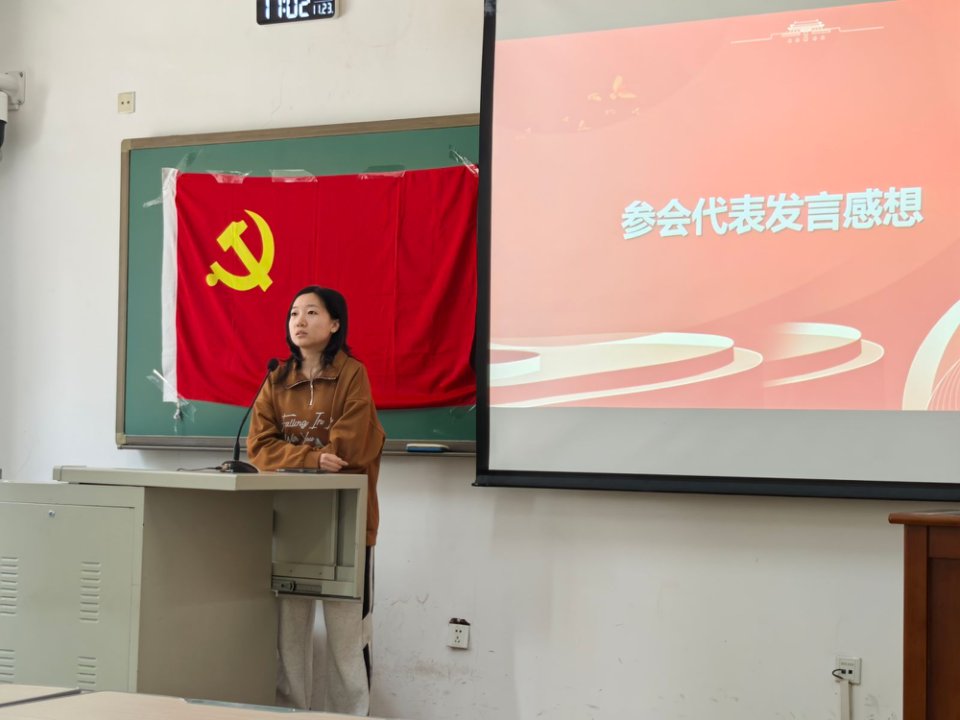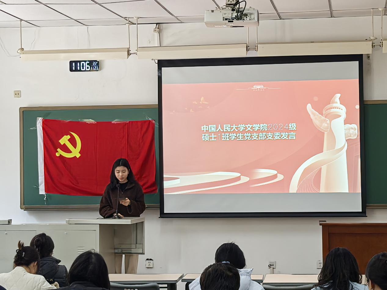 中央戏剧学院戏文系2024级硕士1班徐世龙同学结合自身专业学习与国内外文化发展态势,谈到青年党员应如何通过艺术创作讲好中国故事、传播中国声音。他表示:“作为戏剧文学专业的学生,我们不仅要掌握编剧技巧,更要具备历史眼光与社会责任感。这次与人大同学的交流,让我看到了不同学科视角下的‘红色叙事’,启发很大。”