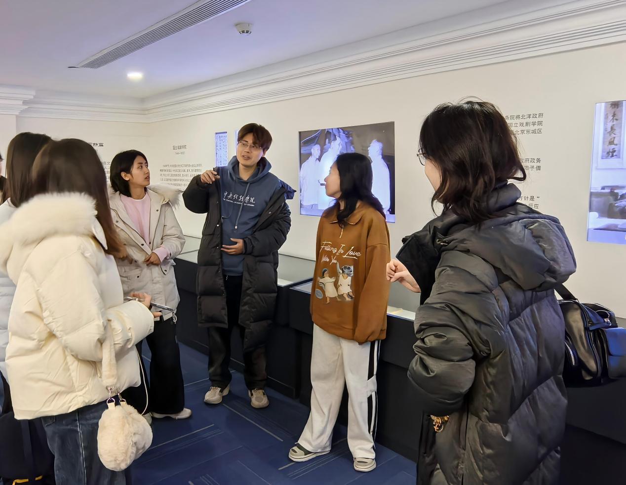 围读结束后,与会师生集体前往中央戏剧学院校史馆参观。在讲解员的引导下,大家共同回顾了中戏自建校以来的辉煌历程,了解了一代代“中戏人”在戏剧教育、艺术创作与文化传播方面的卓越贡献。校史馆中珍贵的史料、图片与实物,生动展现了中戏与时代同频共振、与人民同心同行的优良传统。