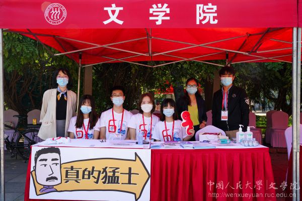 师生进行了交流。靳诺书记还特别称赞了学院为新生拍照准备的红色篆体“人”字形公仔,称“非常有人大特色”!