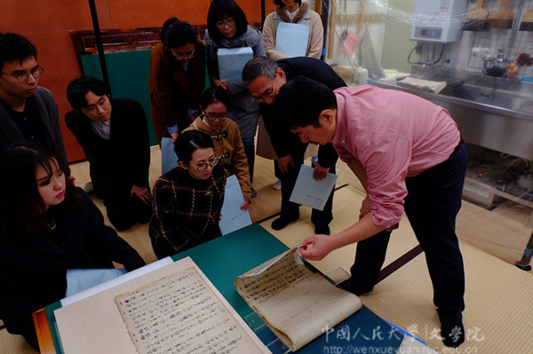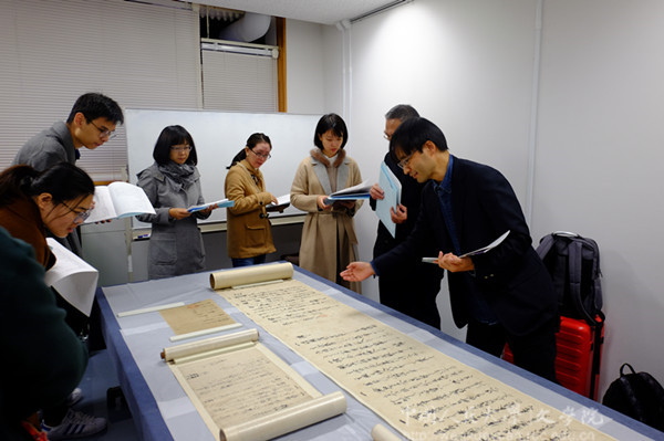 22日下午,访问团一行参观了东京大学东亚文化研究所书库。书库中书架林立,藏书按照经史子集整齐排列。四库全书、珍贵的家史族谱、明清剧作罕见版本、名人评点本、私人藏书等用统一的书皮保存,聚珍堂木活字巾箱本绣像红楼梦更是珍藏在特殊的保险书库中。该文库藏书之丰富,排列之整齐,保存之完好,令大家震撼不已。