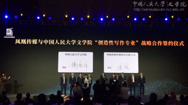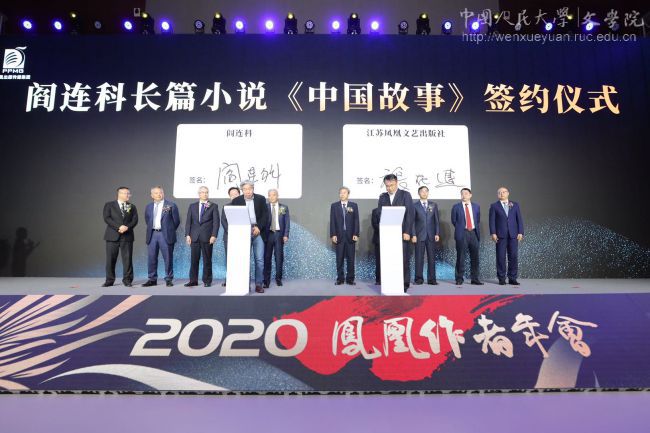的新兴特色专业之一,近年来在阎连科、刘震云、梁鸿、杨庆祥、张悦然等老师的努力下,发展迅速,已经成为国内同类专业的排头兵。在10月23日的“凤凰作者年会”上,还同时举行了阎连科教授最新长篇小说《中国故事》的签约出版仪式。