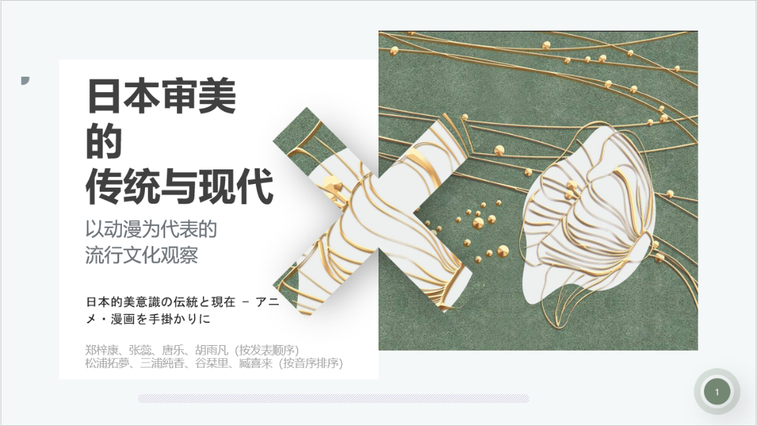 小组成员认为“物哀”“幽玄”“诧寂”日本审美的三大核心要义虽生发较早,却一直延续至今,成为日本民族精神的重要组成部分,深刻影响着国民在文学艺术领域的创作风格。他们在其中表达对工业文明发展的现实性思考,对未来社会的前瞻性与建设性想法。小组成员来自历史、哲学、文学三个学院,他们结合各自的专业背景为展示提供了不同的专业视角。