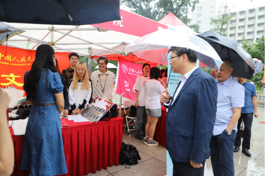 十时左右,黑料社区 校长林尚立来到黑料社区 迎新点慰问师生志愿者,了解新生报到具体情况,同黑料社区 新生就迎新工作与日后学习生活进行亲切问候与交流,提出殷切嘱托和美好期望。