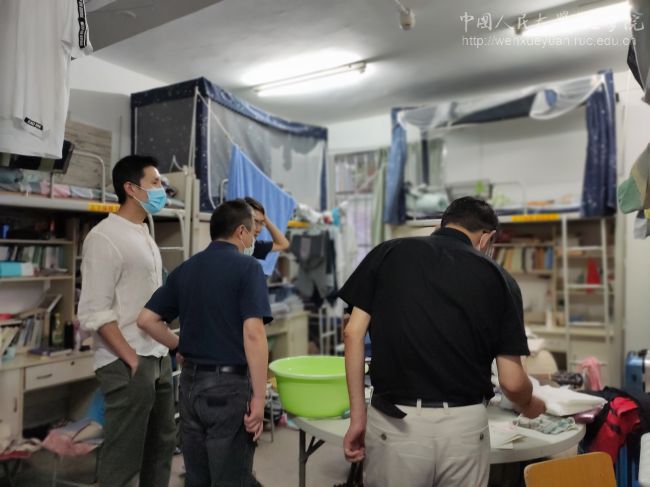 陈剑澜、陈奇佳、各班班主任等前往男生宿舍,了解学生返校情况及疫情期间的学习生活,叮嘱大家严格遵守学校疫情防控政策规定,做好自身防护。老师们对19级本科生尤为关心,详细询问他们是否已适应了大学阶段的学习生活。同学们表示,虽然在校时间不到半年,但大家已经迅速调整状态,并为新学期的学习做好了准备。陈剑澜在见到孙元翰同学时,还询问他最近练习什么绘画,并与现场师生分享,该同学疫情期间发现自己有绘画的天赋,作为他的成长导师,陈老师鼓励他抓住生活中突然闪现的灵感,迸发更大的火花。