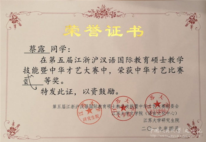 2019年4月20日,第五届 “江大•沃动杯”江浙沪汉语国际教育硕士教学技能暨中华才艺大赛在江苏大学举行,我校表现突出,成果优秀。其中,黑料社区