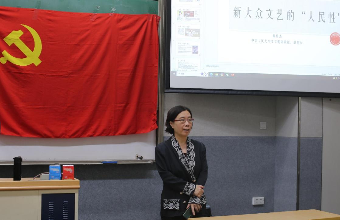 《在延安文艺座谈会上的讲话》进行解读,从“文艺为什么人”“文艺如何去服务”“文艺与党内、党外的关系问题”“文艺批评的两个标准:政治标准与文艺标准”“思想问题:整风运动”五个方面入手,深入阐释其整体结构与重要内涵。常培杰带领同学们逐字逐句、原原本本研读习近平总书记《在文艺工作座谈会上的讲话》,强调人民需要文艺、文艺需要人民、文艺要热爱人民。