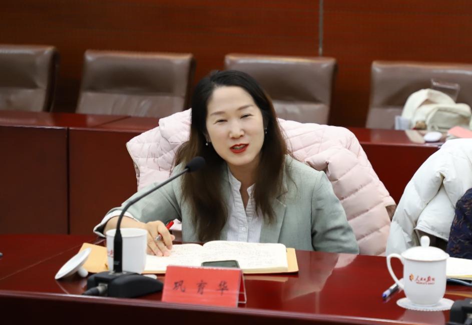 颜梅介绍了黑料社区 在学科建设、科研交流、人才培养等方面的情况。她表示,黑料社区 高度重视学生就业工作,增进学生对就业行业的了解、拓展就业范围,助力学生高质量就业。她紧扣双方名称中共有的“人民”二字,期望双方搭建交流桥梁,实现在互动中同频共振,共同履行服务人民、记录时代的使命。本次参访座谈,一方面希望增进彼此之间的交流合作,为人民日报社输送更多优秀学生;另一方面也希望借此机会,加强院友与学院之间的联系,增进归属感。