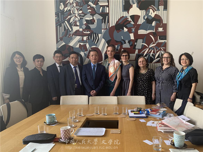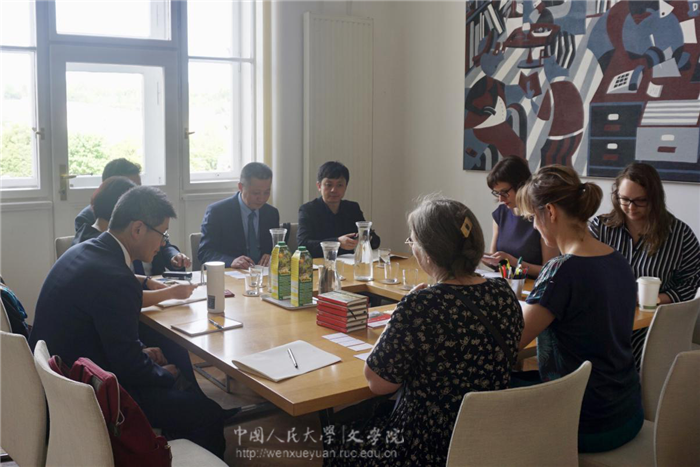 中文学部主任罗然(Olga Lomová),校国际关系办公室主任希尔薇·布莫娃(Sylvie Boumová),国际项目主管凯瑟琳·福特(Katherine Ford),科研处主任白兰卡(Blanka Svobodová)等会见陈剑澜一行。