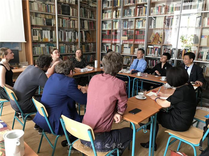 访问期间,陈剑澜一行还与波兰的部分汉学家和翻译家进行座谈。华沙大学李周(Malgorzata Religa)、克拉科夫雅盖隆大学卡塔知娜·邵赖克(Katarzyna Sarek)、社会科学与人文大学玛塔(Marta Tomczak)、职业文学翻译家奥金(Agnieszka Walulik)等参加座谈。与会学者主要围绕中国当代文学作品翻译、中国古代学术经典研究等主题展开深入交流。杨庆祥副院长在座谈中提议,计划明年四月在北京举办“中国当代文学与学术翻译国际工作坊”,邀请中国当代作家、波兰翻译家、两国相关领域学者以及出版商共同参加会议,讨论中国当代文学作品研究和翻译出版等问题。该提议获得与会学者一致赞同。