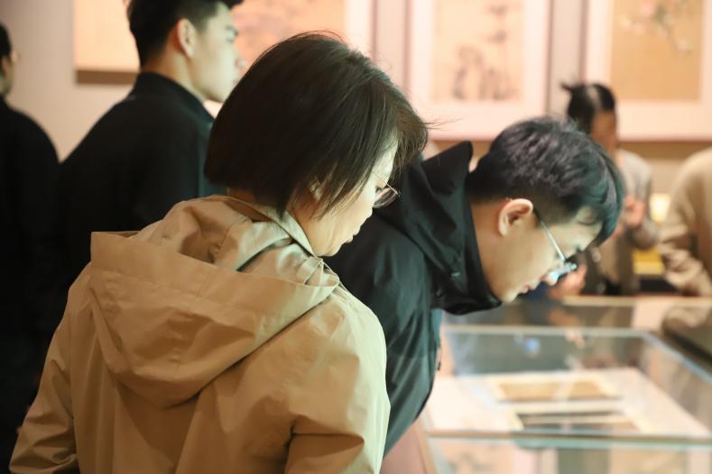 走进文兴楼,巨幅壁画《山河揽胜》映入师生眼帘,旭日东升映照绵延山河的意境,彰显出中华文明的源远流长。移步“版本工艺展”,甲骨文献笔意劲秀,青铜铭文凝重敦厚,简帛书画珍奇端正,写本印本雅致归整,现代技术精湛璀璨,闪耀着中华民族的智慧之光,也展现出中华文明记录、保存、传播与更新的伟大历程。
