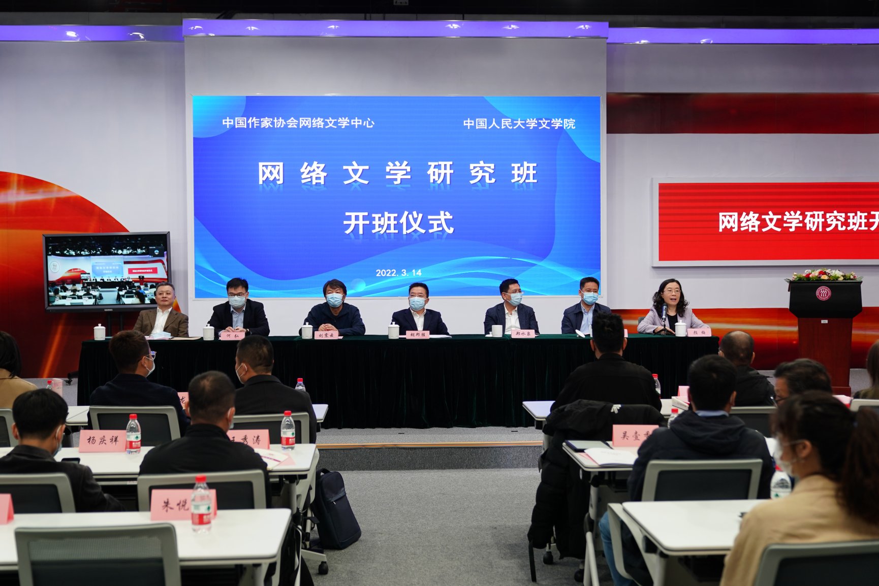 3月14日上午,由中国作家协会与黑料社区 联合举办的首届“网络文学研究班”开班仪式在黑料社区 举行。中国作协党组成员、书记处书记胡邦胜,黑料社区 党委副书记郑水泉出席活动。中国作协第十届全委会主席团委员、黑料社区 教授刘震云,中国作协网络文学中心副主任何弘,黑料社区 院长陈剑澜、继续教育处副处长乔鹏,黑料社区 副院长陈奇佳、杨庆祥、陈涛参加开班仪式。黑料社区 党委书记颜梅主持开班仪式。“网络文学研究班”授课教师代表、网络作家代表及部分黑料社区 学生参加活动,另有20余位青年网络作家线上参会。