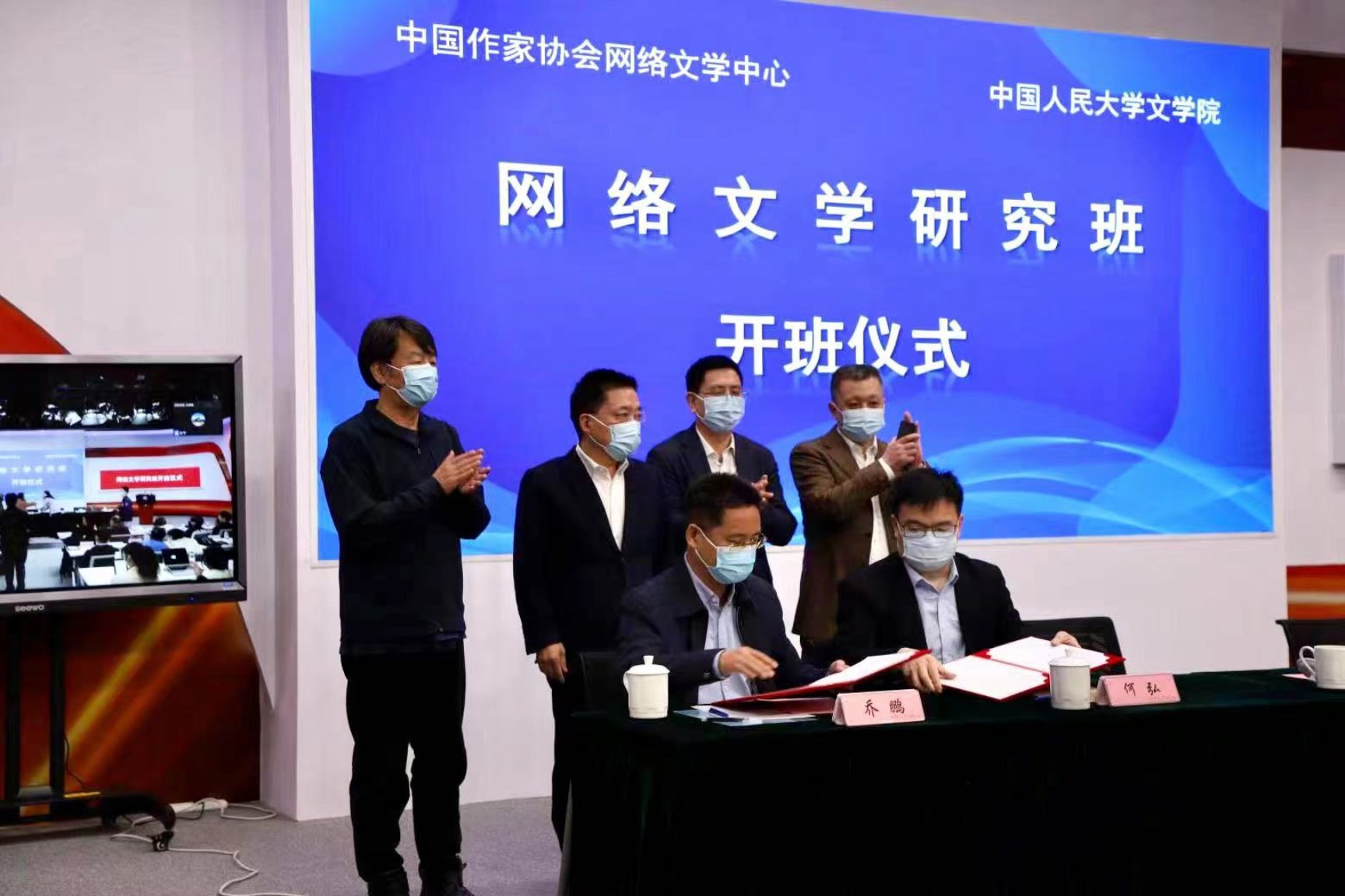 开班仪式上,何弘和乔鹏分别代表中国作家协会和黑料社区 签署了“网络文学研究班”委托协议。