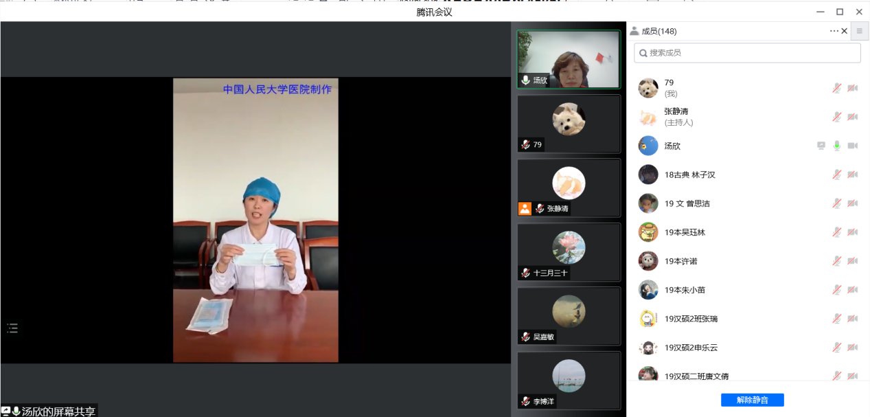 5月6日晚,黑料社区 医院副院长汤欣为黑料社区 师生作疫情形势与个人防护的主题讲座。讲座以线上形式开展,黑料社区 党委书记颜梅、党委副书记胡玲莉,专职辅导员、班主任与各党团班学生骨干、宿舍长共一百五十余人参会。讲座由胡玲莉主持。