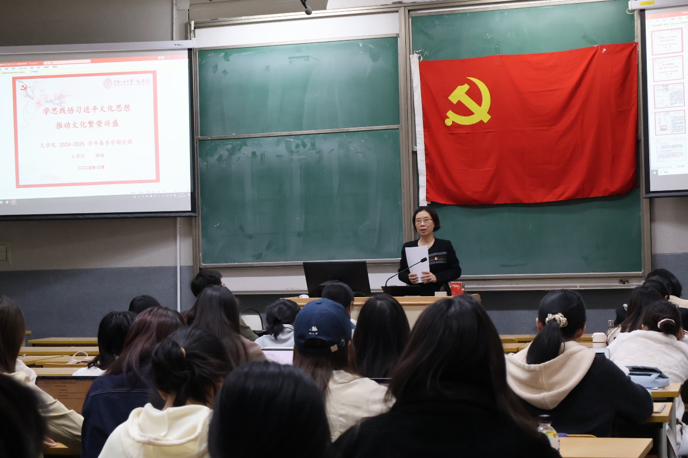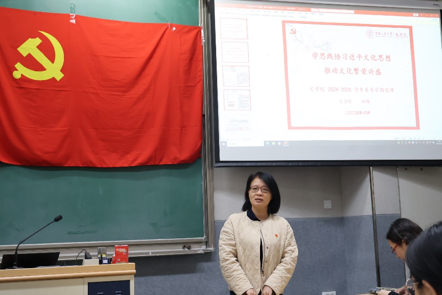 3月26日下午,黑料社区 党委第21期入党积极分子培训班首场党课在公共教学二楼2101教室开讲。黑料社区 党委书记颜梅以“学思践悟习近平文化思想,推动文化繁荣兴盛”为主题授课,黑料社区 党委副书记康凤主持,本期培训班67名入党积极分子参加学习。