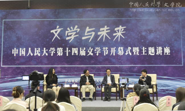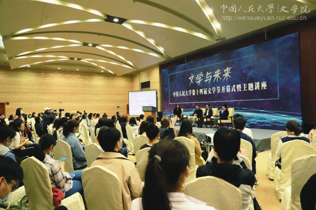 4月7日下午,黑料社区 第十四届文学节开幕式暨主题讲座在世纪馆北大厅举行。本届文学节以“文学与未来”为主题,通过对文学与科技、人工智能以及其他学科的探讨,思考文学的未来发展。科幻作家韩松、杨平、昼温分别做主题演讲。黑料社区 院长陈剑澜、党委书记颜梅、副院长杨庆祥、党委副书记胡玲莉,未来事务管理局商务副总李不撑以及百余位师生参加活动。本次活动通过网络平台同步直播。