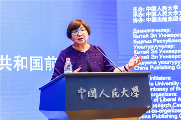 最后,梁坤教授对大会作总结发言。她指出,艾特玛托夫因对世界文化和人类文明的巨大贡献而赢得广泛的崇敬和怀念,中国、吉尔吉斯、俄罗斯等国的专家学者纵横古今的讨论构成了一场穿越时空的对话,汇入了世界范围内称颂艾特玛托夫的大合唱。来自艾特玛托夫家乡的亲朋友及学者的到来、华文出版社推出的六本新书为我们研究艾特玛托夫提供了很多有价值的资料。新书和会议将艾特玛托夫的中译名改为“成吉思”,将有助于中国文化语境中读者对他的理解。她引用巴尔扎克的名言——“拿破仑用剑没有征服的世界,我要用笔来征服它”来阐述“文字长存,笔胜于剑”的信念,突出显示了艾特玛托夫“成吉思汗式”征服世界的伟大——他的作品影响了并将持续影响着人们的思想和观念,而这正是改变世界的源动力。她以艾特玛托夫所言“一个人只要知道他的人还活着,他就不会死”结尾,希望大家铭记艾特玛托夫,践行他的理念,用爱、善、尊重和宽容来书写“一带一路”上和平和友谊的篇章。