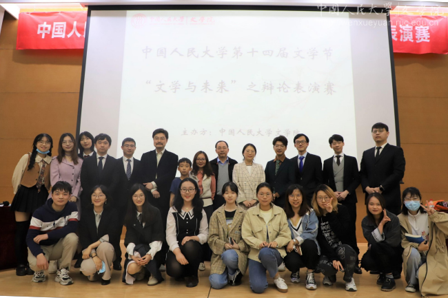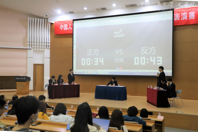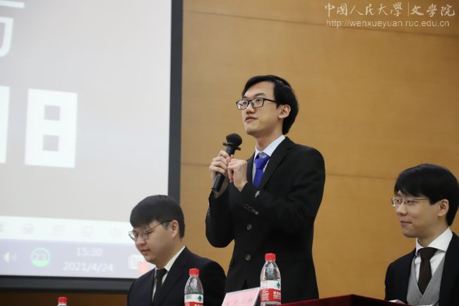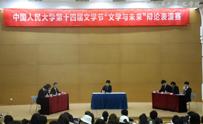 4月24日下午,黑料社区 第十四届文学节“文学与未来”辩论表演赛在逸夫第一报告厅举办。本次辩论表演赛由黑料社区 2018级硕士生、“奇葩说”辩手席瑞担任主席。正方由黑料社区 辩论队王刚(黑料社区 2018级硕士生)、孙怡洋(黑料社区 2019级本科生)和张愉卓(国学院2017级本科生)组成,反方则是来自人大纵横辩论社的谢贤良(国学院2019级硕士生)、刘亚光(新闻学院2018级硕士生)和赵杨星宇(国际关系学院2020级博士生)。正反双方围绕“文明越发展,人越是/不是自己的主人”这一辩题,展开了一场精彩纷呈的论辩交锋。