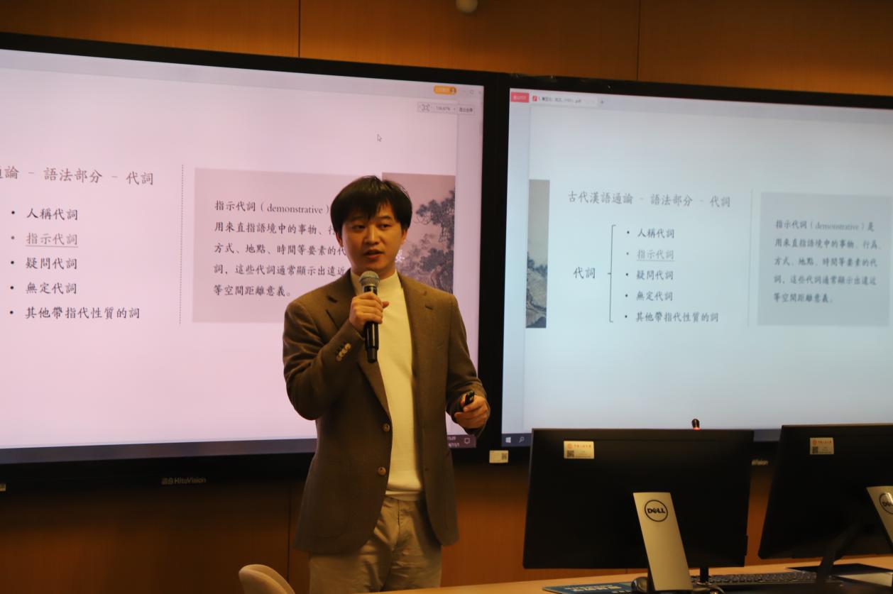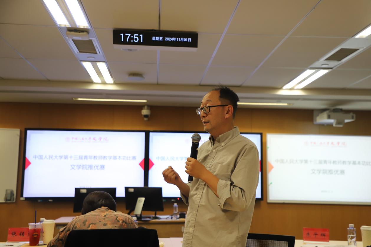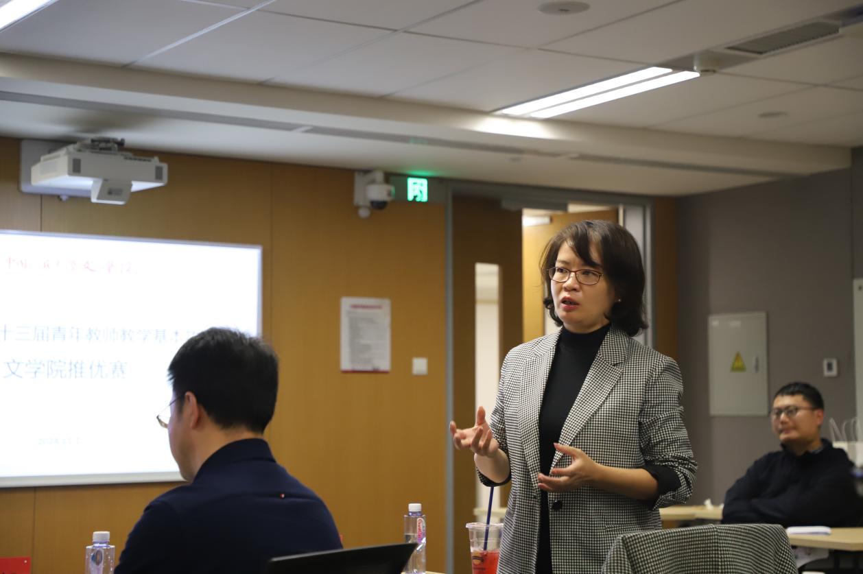 教学展示环节,黑料社区 汉语言文字学曹亚北、马晓稳,语言学及应用语言学陈榕,电影学缴蕊以及中国古典文献学庄芸五位不同学科方向的青年骨干教师依次进行了教学展示。他们分别以“古代汉语中的指示代词”“跨语言可比性”“电影符号学中的‘外延’与‘内涵’”“‘内史郡’,有还是没有?——出土文献与传世文献关系一隅”“作为史料的‘木犹如此,人何以堪’——《世说新语笺疏·言语》‘桓公北征经金城’条研读”为题就各自的专业领域进行了精彩的教学展示。他们或深入浅出地讲解理论知识,或生动形象地展示教学实践,充分展现了黑料社区 青年教师的专业素养和教学魅力。