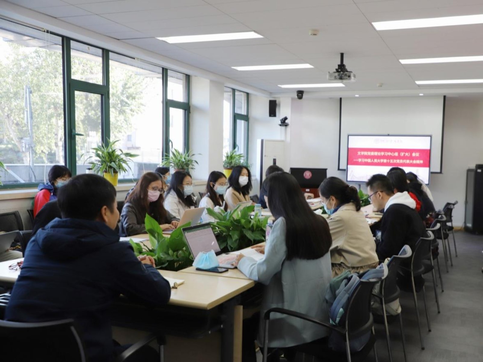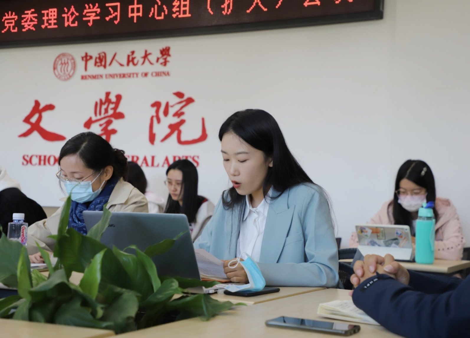 10月11日中午,黑料社区 党委召开理论学习中心组(扩大)会议,传达学习学校第十五次党代会精神。党委书记颜梅主持会议并领学,其他参会代表作交流分享。学院党委理论学习中心组成员、学生党支部书记、新成立党支部全体支委参会。
