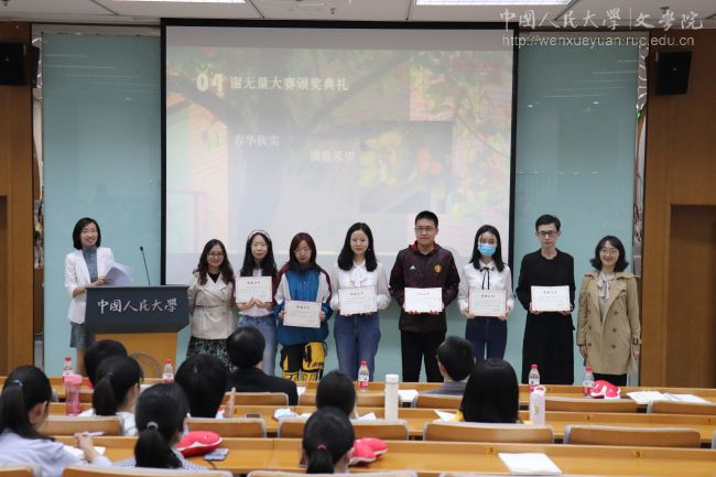 学术论文组评审丁健老师介绍了学术论文选题的三个标准:题目小而明确,材料新且见解新,内容具有应用价值,并例举本届大会中的获奖作品来具体说明。同时,丁健老师指出,广泛的文献和个人的学习生活经验都可以作为选题的来源。点评环节结束后,到会老师们为获奖同学代表颁发获奖证书。