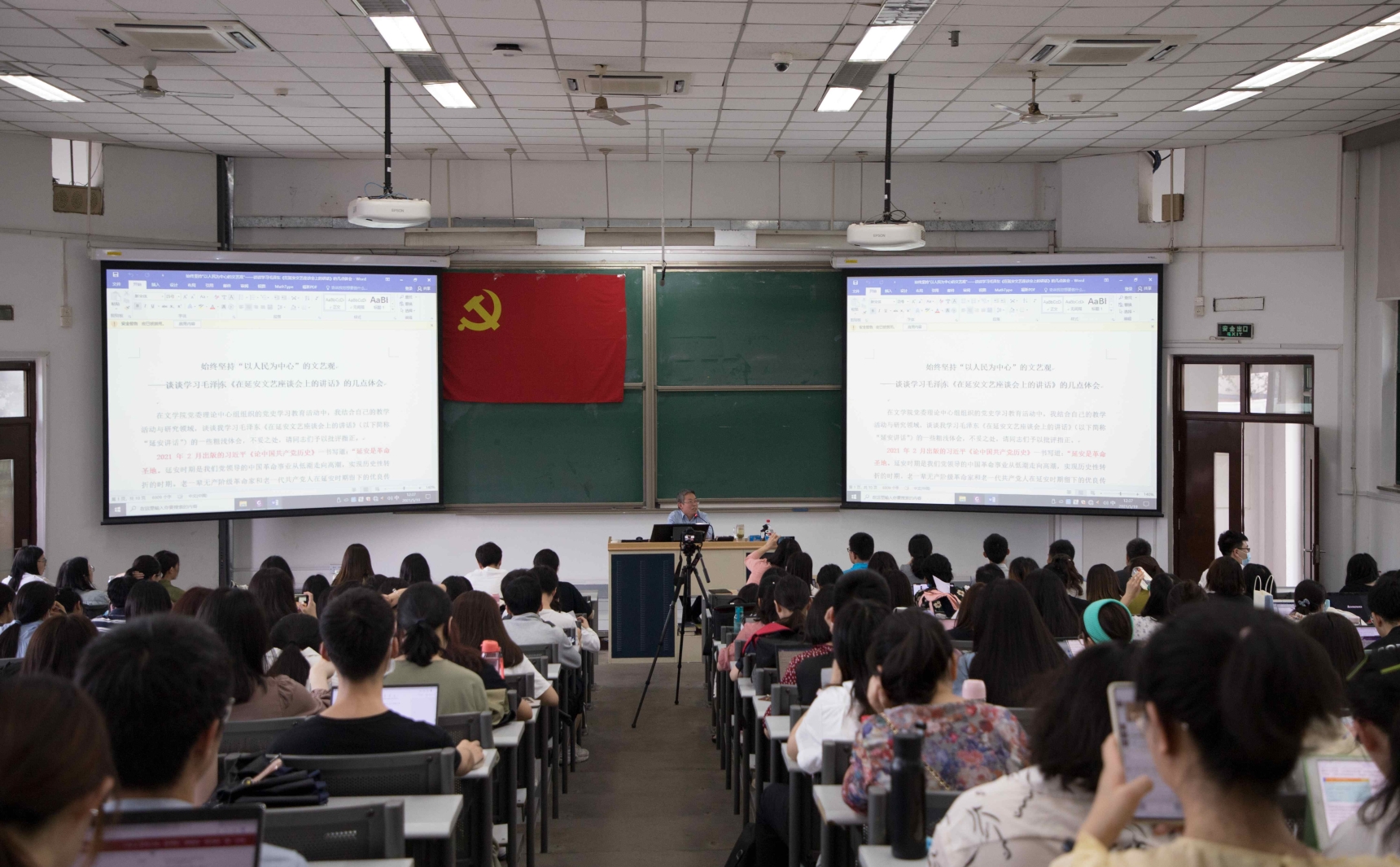 5月19日中午,黑料社区 党委举办“大师讲党史”第二讲。黑料社区 马克思主义文艺理论学科带头人张永青以“始终坚持‘以人民为中心’的文艺观——谈谈学习毛泽东《在延安文艺座谈会上的讲话》的几点体会”为题讲授专题党课。